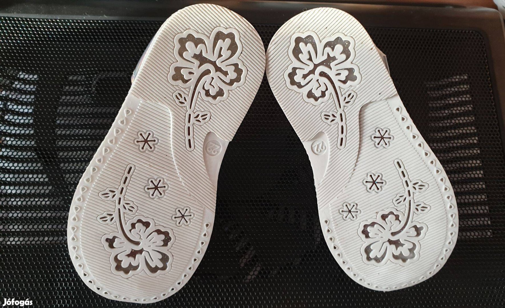 Eladó a fotókon látható 22-es méretű szinte teljesen új lányka szandál. Tépőzáras elől és bokánál is.