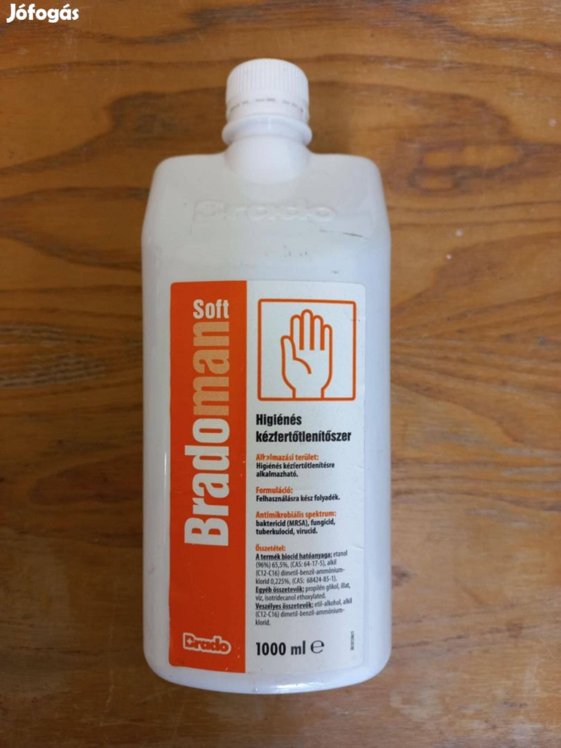 Eladó Bradoman Soft professzionális kézfertőtlenítő szer, gazdaságos 1 literes kiszerelésben. Ez egy orvosi/egészségügyi szintű készítmény, amely sokkal hatékonyabb a boltokban kapható egyszerű géleknél.