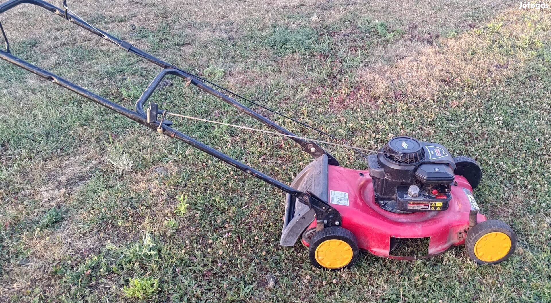 3,5 lóerős Briggs motor, kerekenkénti magasság állítás. Olaj lecserélve, új stop leállító bowden, kerekek jók, nincs szétrohadva. Nagy csodára ne számíts, de a füvet le tudod vele nyírni.