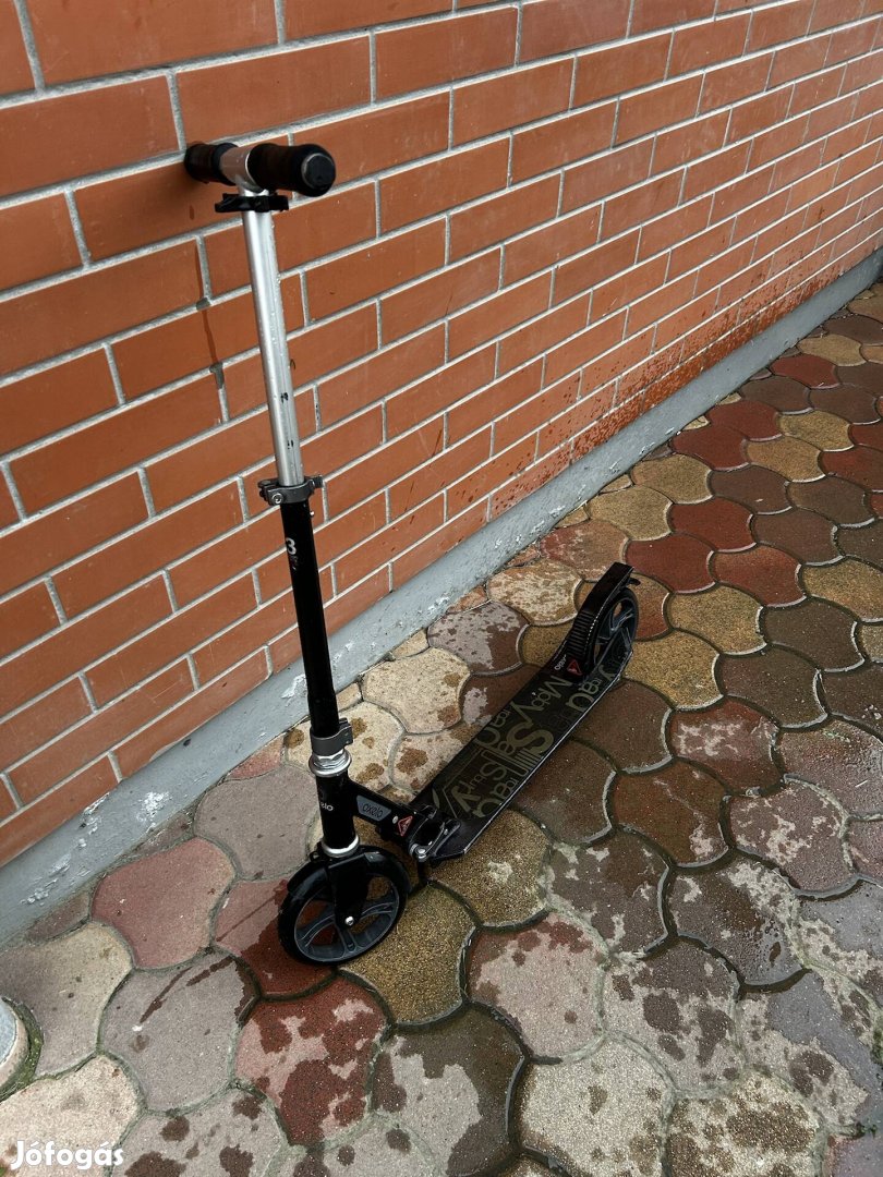 Eladóegy fekete színű Dechatlonos roller. Könnyen összecsulható, kis helyen elfér. Nagy kerekek a rosszabb utakra.