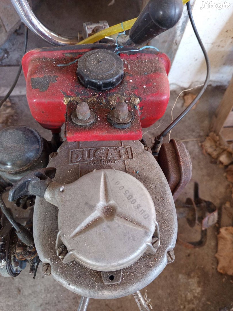 Ducati kapálógép gumikerekekkel, kiegészítőkkel. 3 éve volt utoljára beindítva, akkor működött.