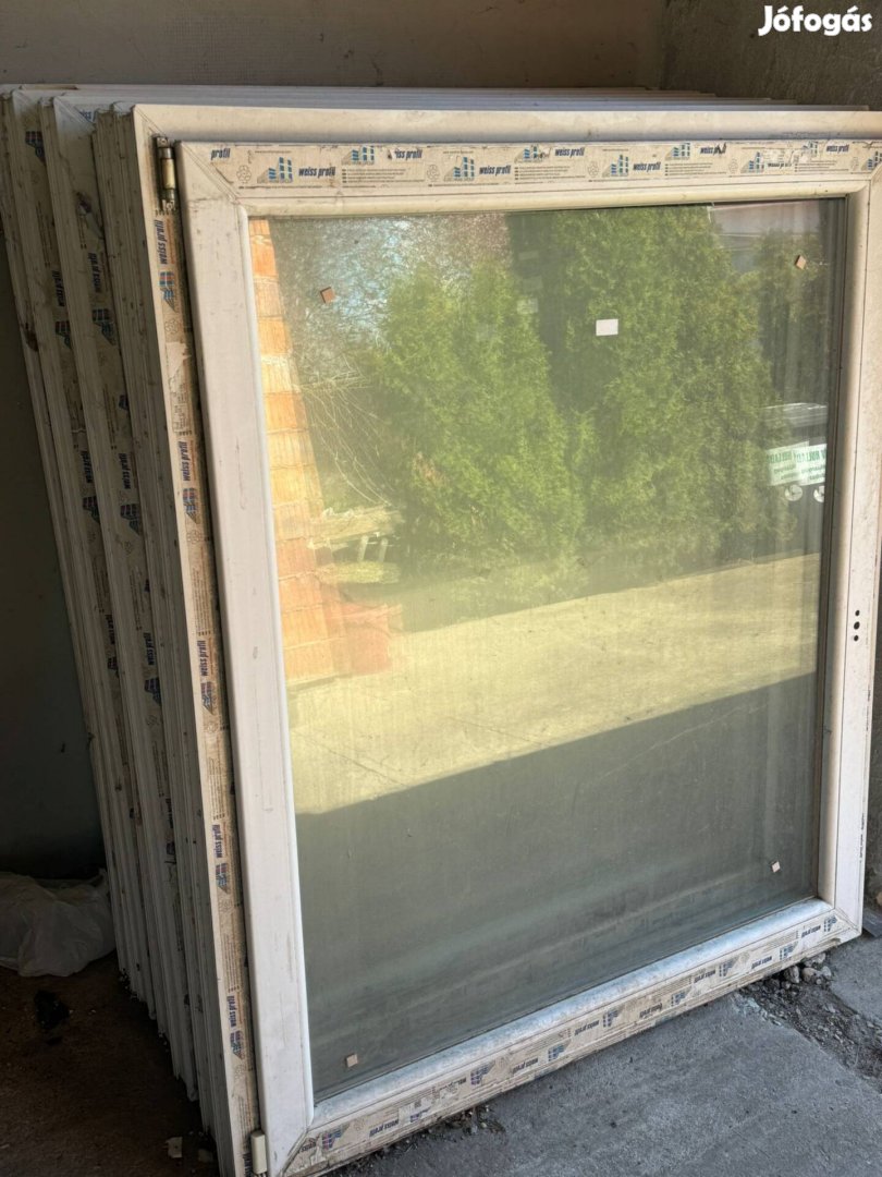 Eladó 120 széles 140 magas új ablak ( 7db) Weiss profil 2 rétegű gázzal szigetelt üvegezés ,7 kamerás műanyag profil ,német vasalás !
