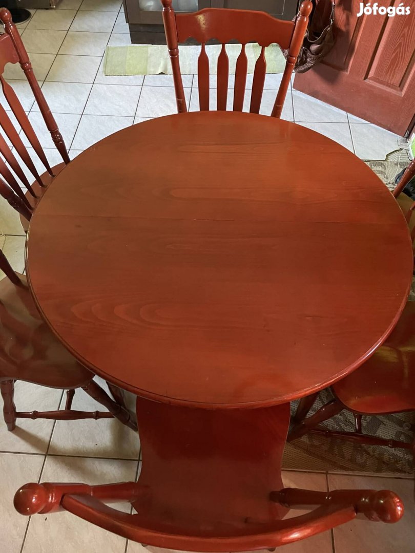 Eladó a képeken látható, szép állapotú, masszív fa étkező garnitúra.