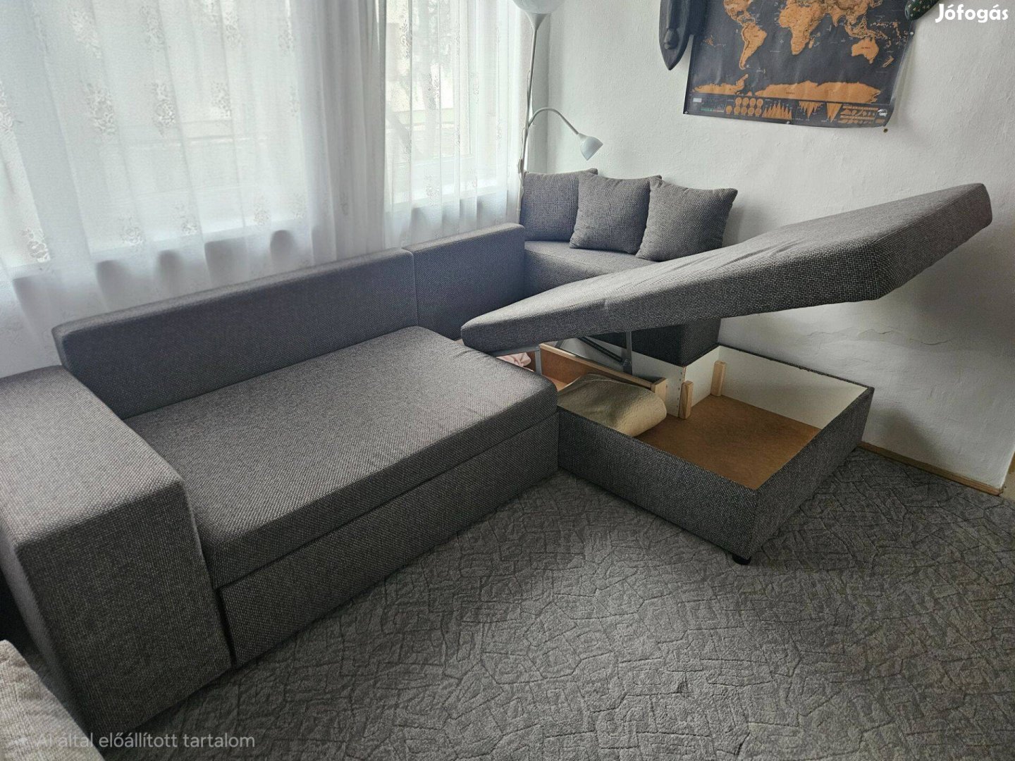 Alig használt, teljesen újszerű állapot, ágyazható, ágyneműtartós, díszpárnákkal.