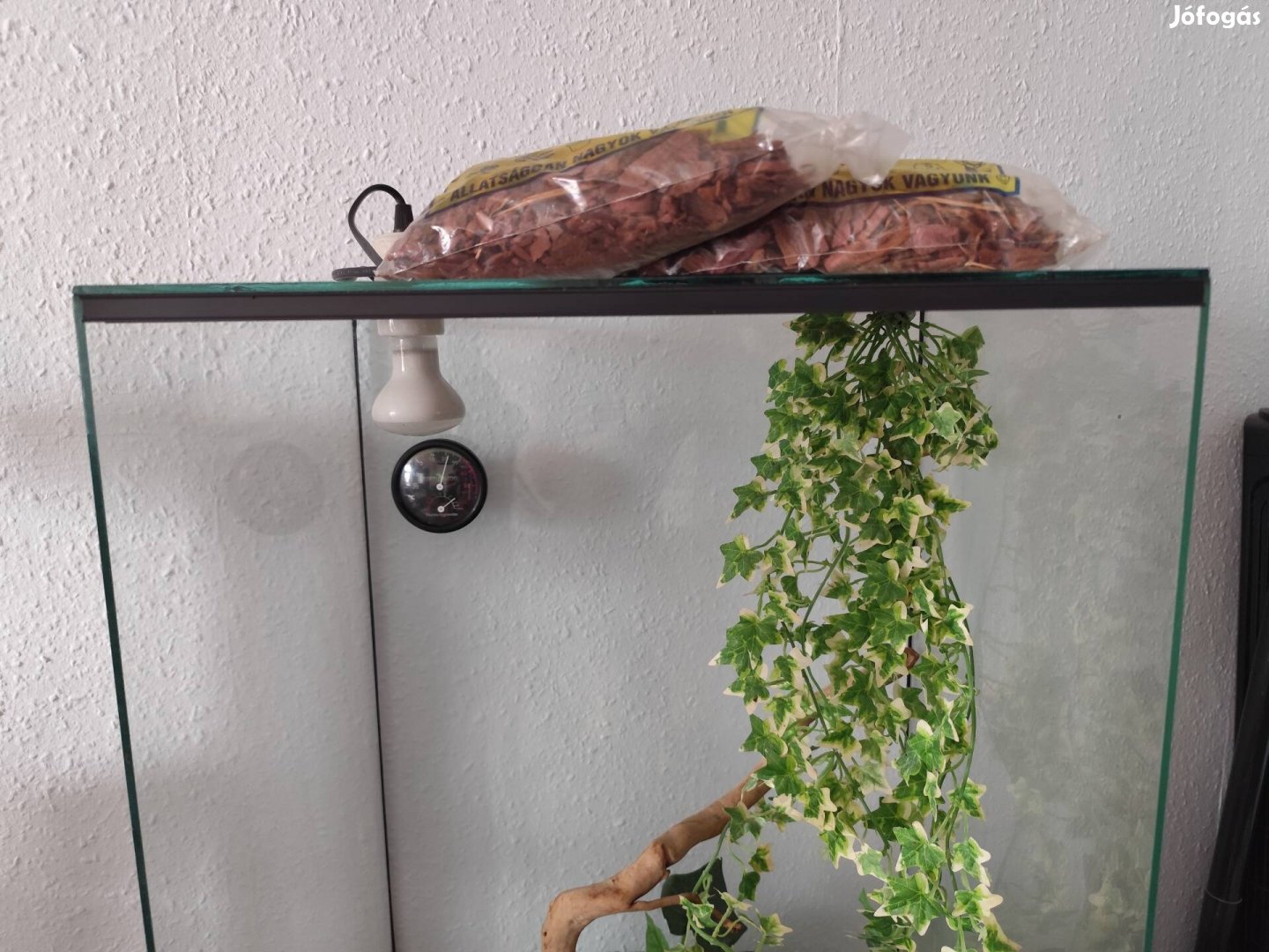 Eladó egy 45x35x80as üveg terrárium sok kiegészítővel együtt.