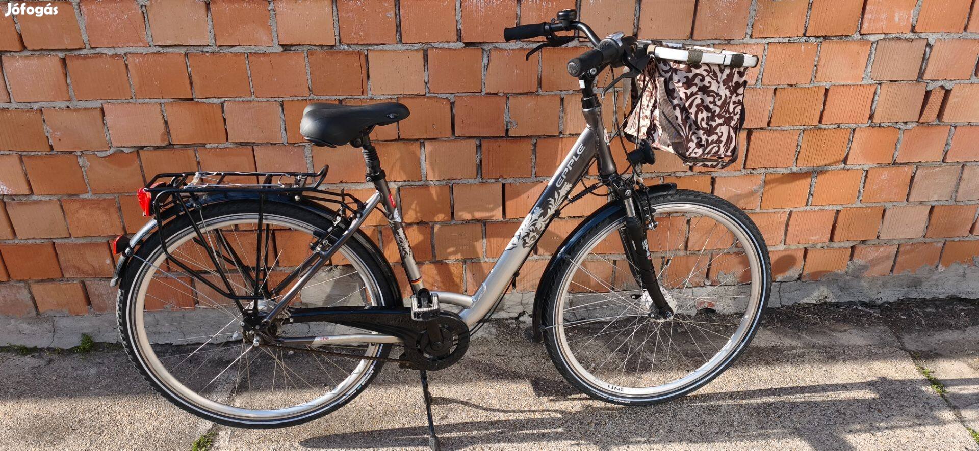 Eladó a képen látható Epple 28" aluvázas , agydinamós, agyváltós kerékpár. Levehető kosárral, duplafalú alufelnivel, első teleszkóppal, rugós nyeregcsővel, Shimano Nexus agyváltóval, Megtekinthető Szegeden előzetes egyeztetést követően, vásárlásról áfa mentes számlát adok.