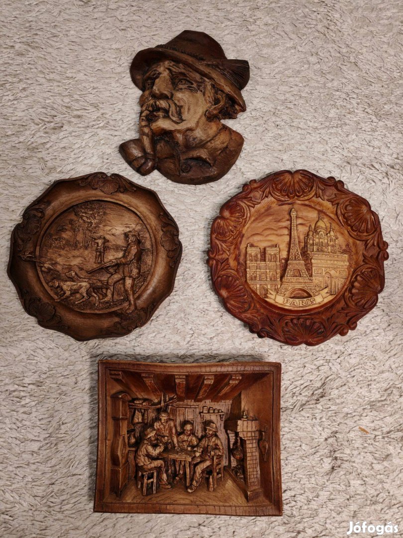 Fa hatású dekoratív fali dísztárgyak a 80-as évekből, Franciaországból és Ausztriából. A megadott összeg a 4 db-ra vonatkozik, de külön-külön is eladó.