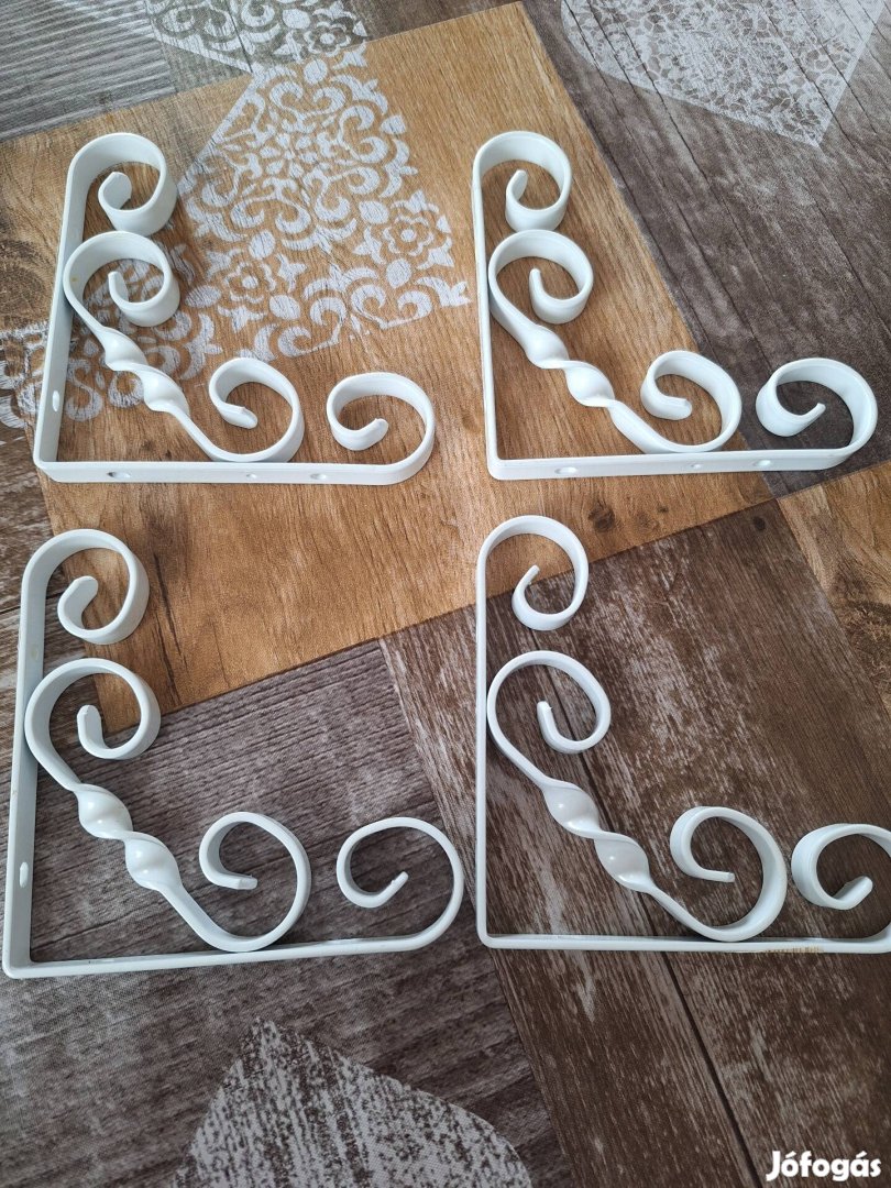 Fehér fém kovácsoltvas polctartó konzol, soha nem használt,, Ikeában vásárolt 4 db, 2000/ db. 13 cm es oldalakkal. Máshol is hirdetem. Foxpost automata, utánvéttel is lehetséges