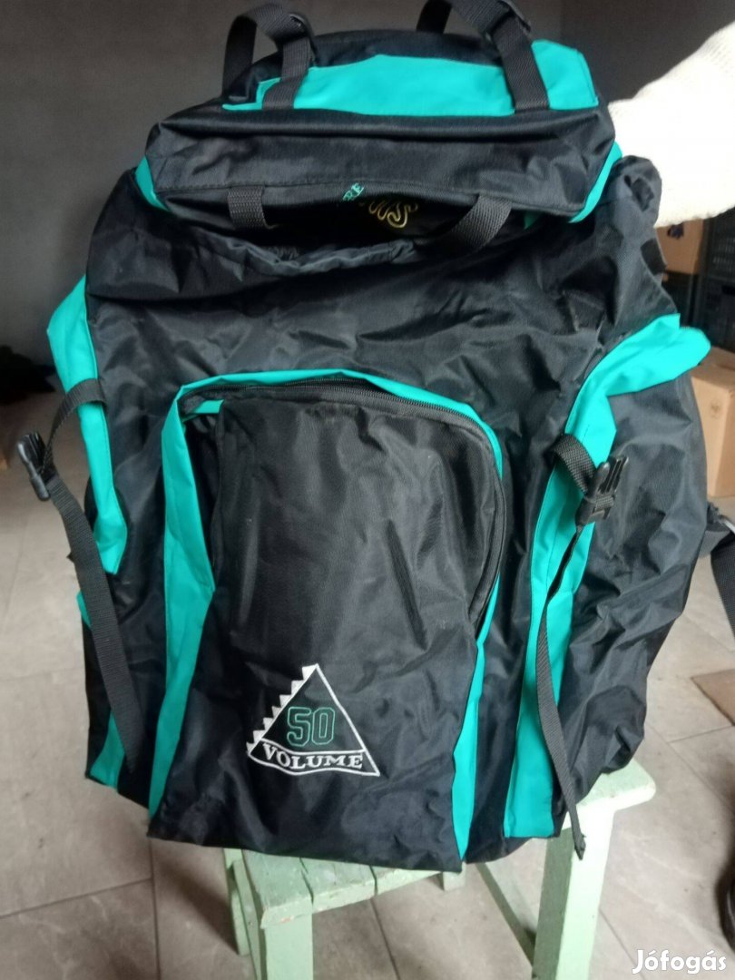 Fermis 50l-es -zöld-fekete-használt, hátizsák,túrazsák eladó.Derék és vállpánt párnázott,hátmerevítős,teteje kivülről pakolható.Elől 1 nagy zseb,egyik oldalt 1 nagy zseb,másik oldalt 2 kisebb zseb van.Egyterű,erős anyagú.Újszerű,megkímélt állapotú.Zippzárak,csatok tökéletesen működnek.