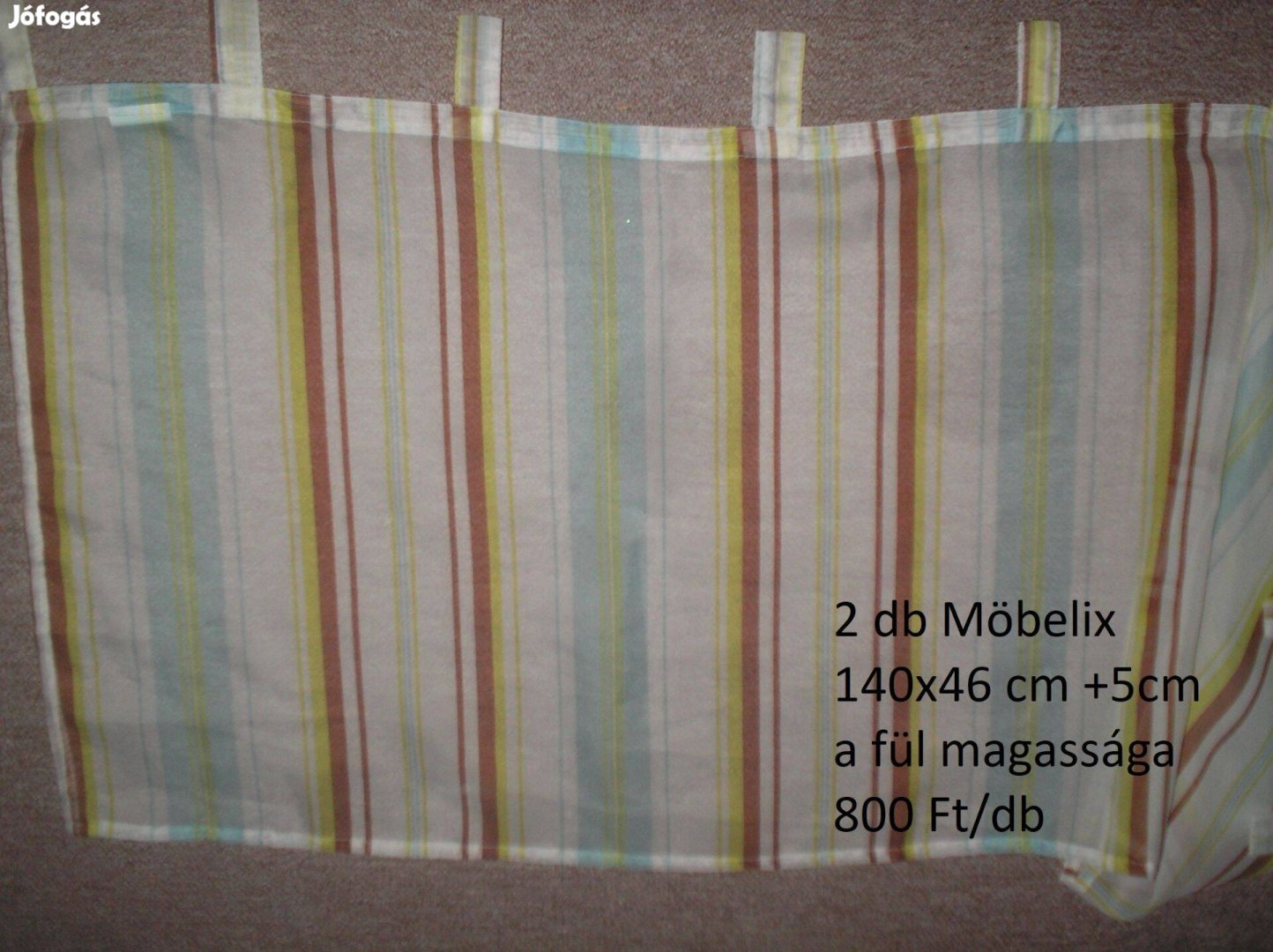 2 db Möbelix függöny mérete 140 x 46 cm + 5 cm a fül magassága. 800 Ft/db.