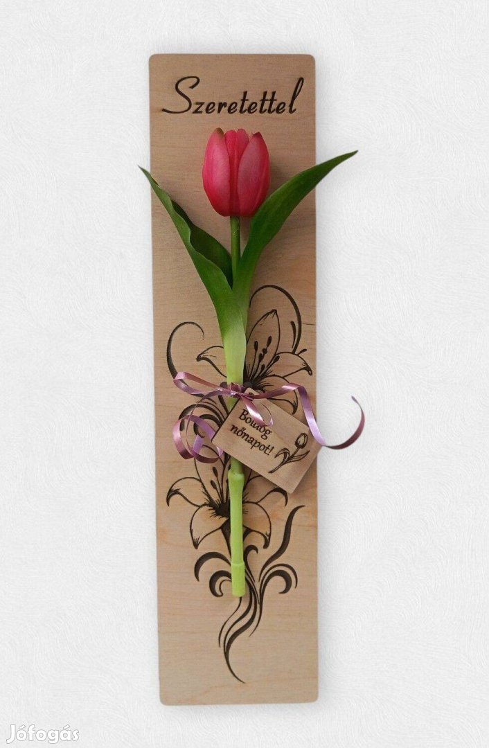 Gravírozott tulipántartó gumitulipánnal nőnapra de más alkalomra is.