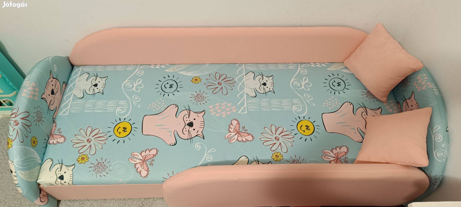 Eladó két darab új gyerekágy. Körbe szivacsos támlás, ágynemü tartós. Két kis párnával. Az egyik balos a másik jobbos. a fekvő felület 148x58 cm, a támla magassága 40 cm, fekvő felület 27 cm magas és 6 cm vastag szivacs. Teljes szélesség 68 cm, teljes hossz 161 cm.