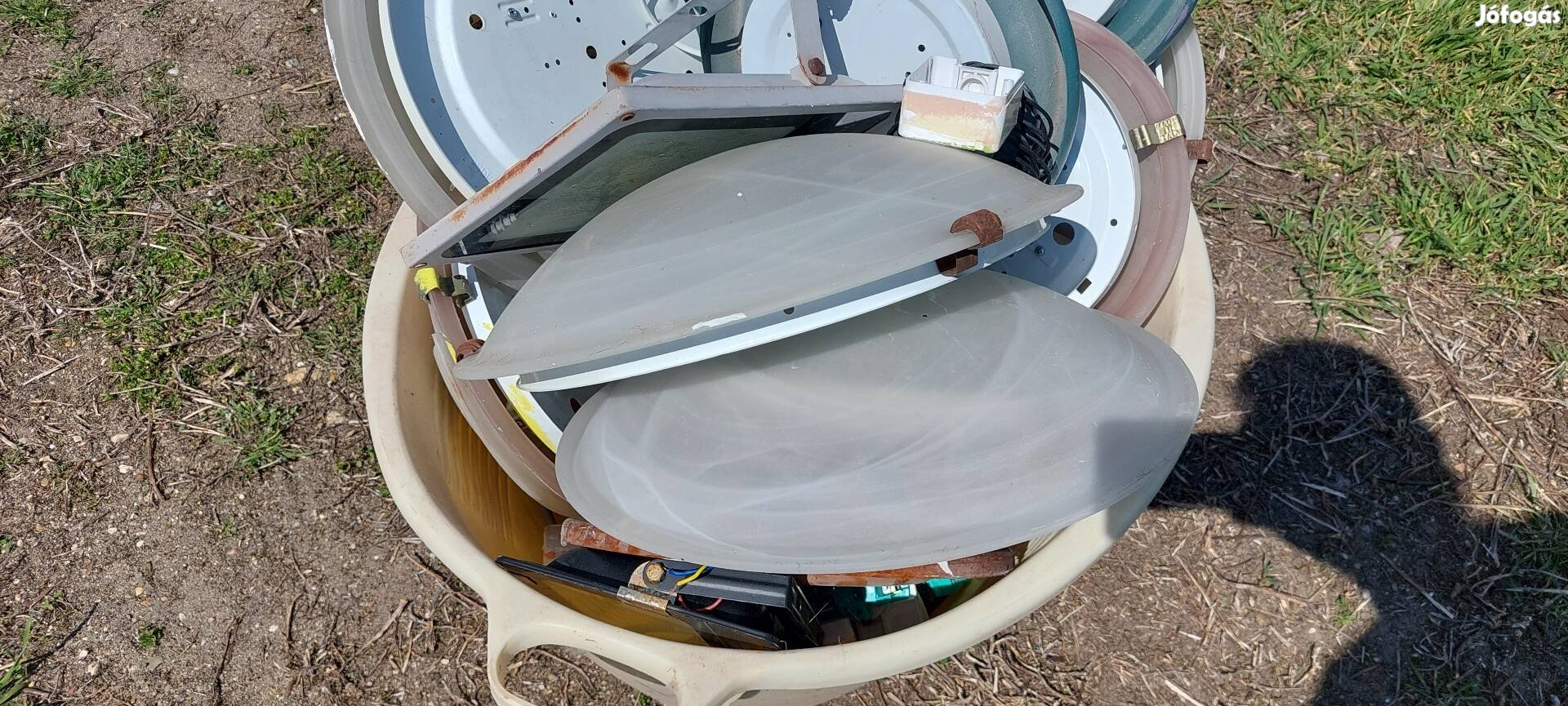 Házfelújításból származó mennyezeti lámpák eladók, kb 16 db, E27 foglaltúak, mind működő képes, nem törött, csak festékes. A kád nem eladó.