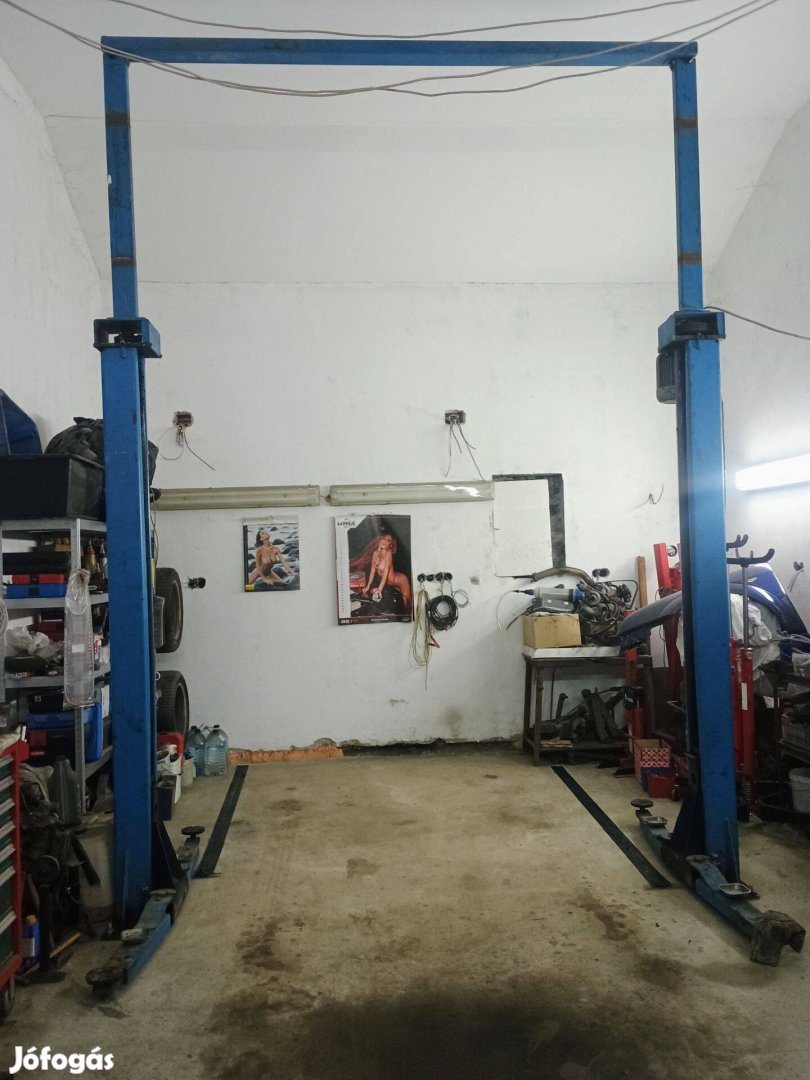 Eladó a képeken látható Hofmann duolift bs2000 típusú 2 tonnás csápos emelő három fázisú villanymotorral. Napi használatban volt, a jobb oldali oszlop főanyája eltört, jelenleg nem üzemképes, főanya cserére szorul. Mérete és súlya miatt csak személyes átvétel lehetséges, jelenleg kiszerelt állapotban van, azonnal elvihető.