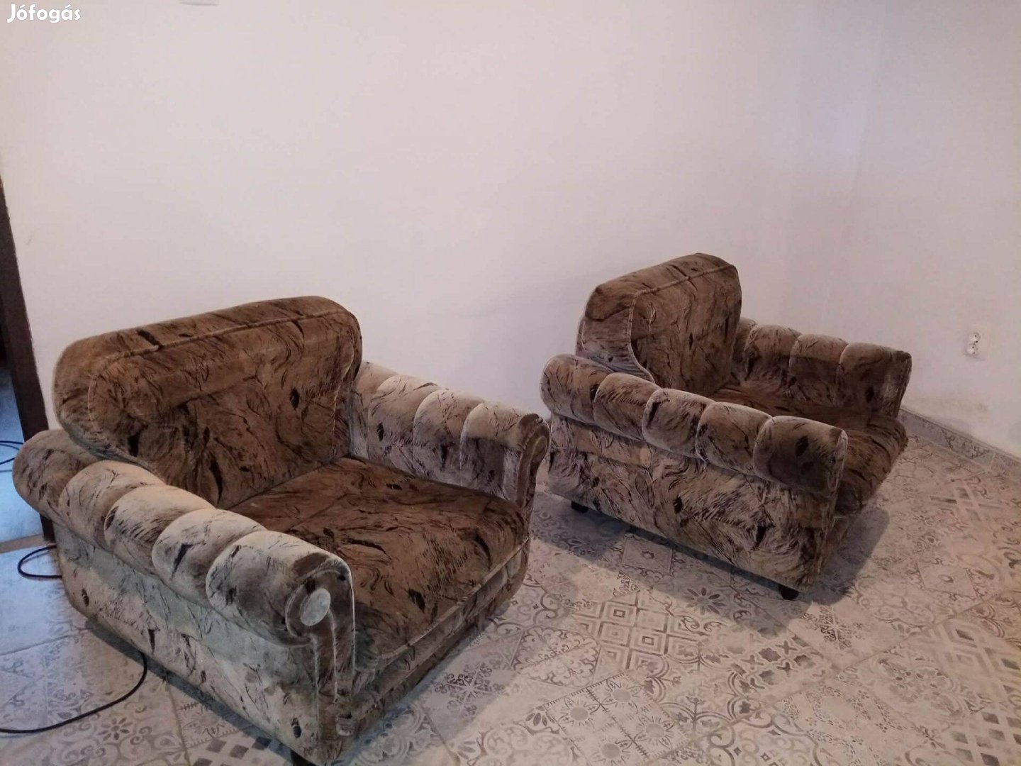 Két darab fotel ingyen elvihető. Takarítást igényel, de nem szakadt a kárpit. Görgői épek, a rugók feletti takarókárpit sérült, de használatát nem befolyásolja. Szerkezete nem sérült. Méret: 86 cm széles, 80 cm mély, ülésmagasság 40 cm. Szállításban nem tudok segíteni.