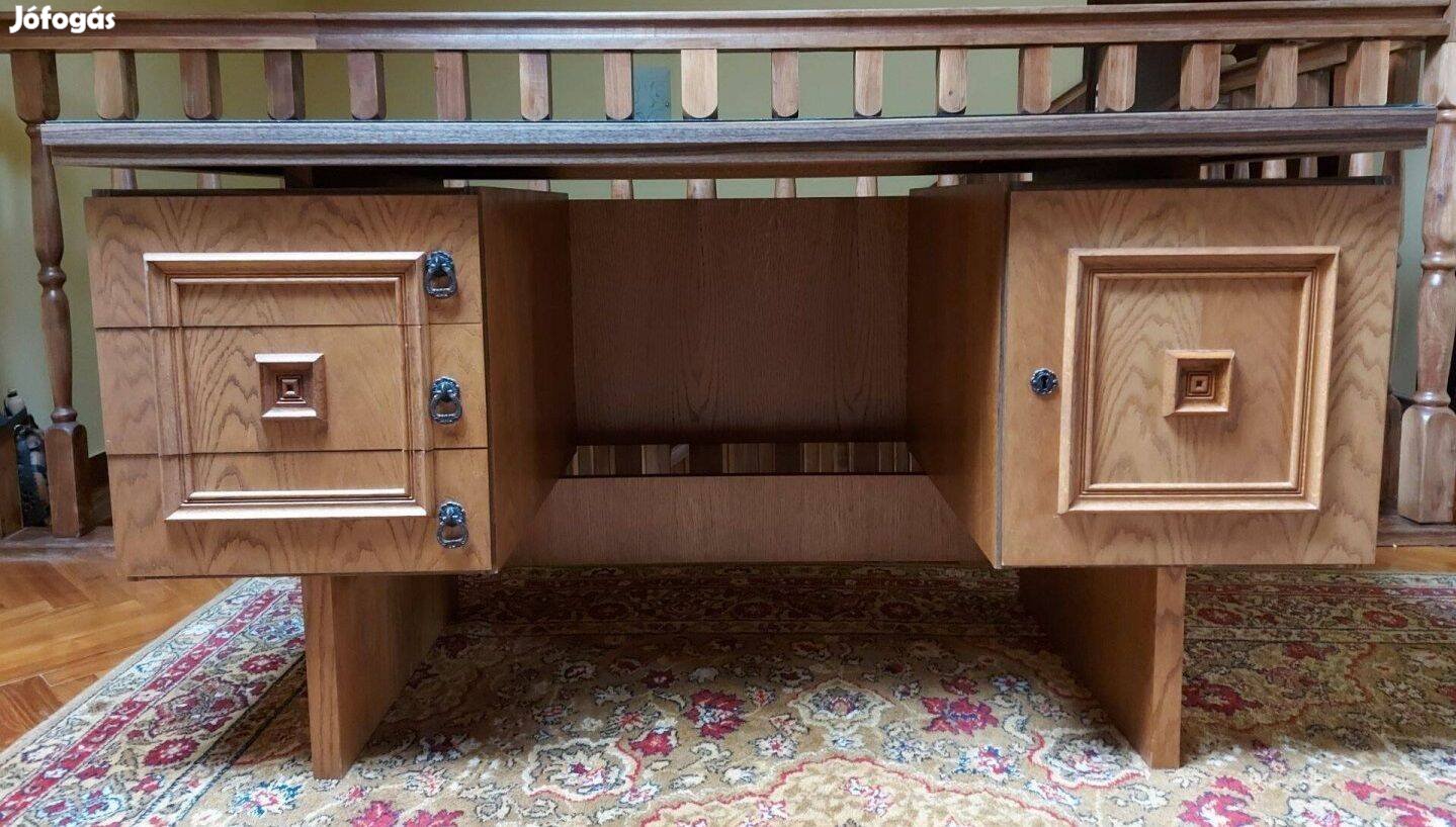 A képen látható jó állapotú barna színü íróasztal eladó. Az íroasztalon végig üveglap volt, így a felülete hibátlan. Érdeklödni a es telefonszámon lehet.