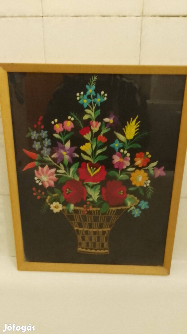 Kalocsai hímzés fekete háttérrel, üvegezett kerettel