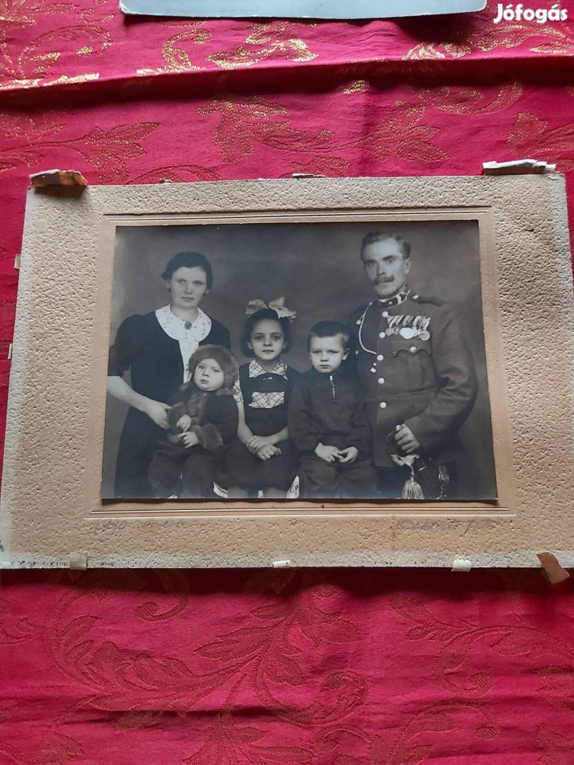 Eladásra kínálom az alábbi fekete - fehér régi fotográfiát, melyen egy katonatiszt látható családjával.Nagy méretű fotó a múltból egy letűnt kor emléke békés családi hangulatban.