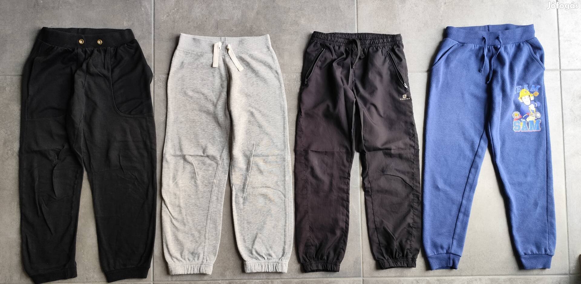 Kb 122-es játszós nadrág csomag (a fekete egyik térdén varrás, a Domyos térde kopott, a Sam a tűzoltó ülepén apró varrás). Kérdés esetén szívesen mérek, előreutalást követően szívesen postázok.