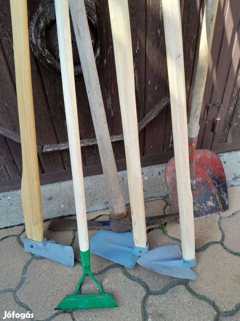 Eladóak a képen látható kerti szerszámok: kapák, lapát, fejsze, csákány. Ár: 3 500 Ft-tól 7000 Ft-ig
