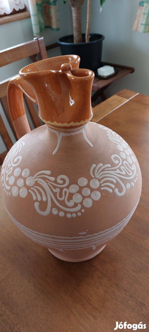 Hagyatékból 2 db vásárhelyi csörgőskancsó eladó eladó egy kisebb és egy nagyobb. A nagy méretei: magasság: 37 cm átmérő: 26 cm. A kisebb magasság: 28 cm átmérő 18 cm. Az a kettőre értendő de darabonként is megvásáolható. Nagyobb 12000.-Ft a kisebb 8000.-Ft. A közölt ár a két darabra vonatkozik. Nem postázom törésveszély miatt, csak személyes átvétel. A termék Algyőn található.