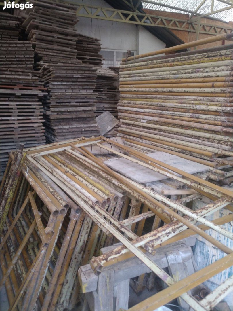 Eladó 100m2 un. kiskunhalasi sárga domino állvány, használt, jó állapotban, rendszeresen karbantartva (festés javítás), első tulajdonostól. Komplett rendszer, átkötőkkel, korláttal, járólapokkal, stb..
