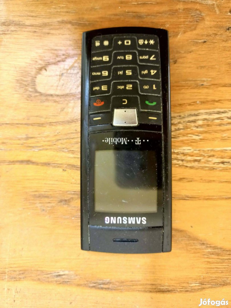Eladó a képeken látható, hagyományos kialakítású Samsung mobiltelefon. Letisztult, kompakt forma, sötétszürke hátlappal. Igazi megbízható, nyomógombos készülék a 2000-es évek végéről.
