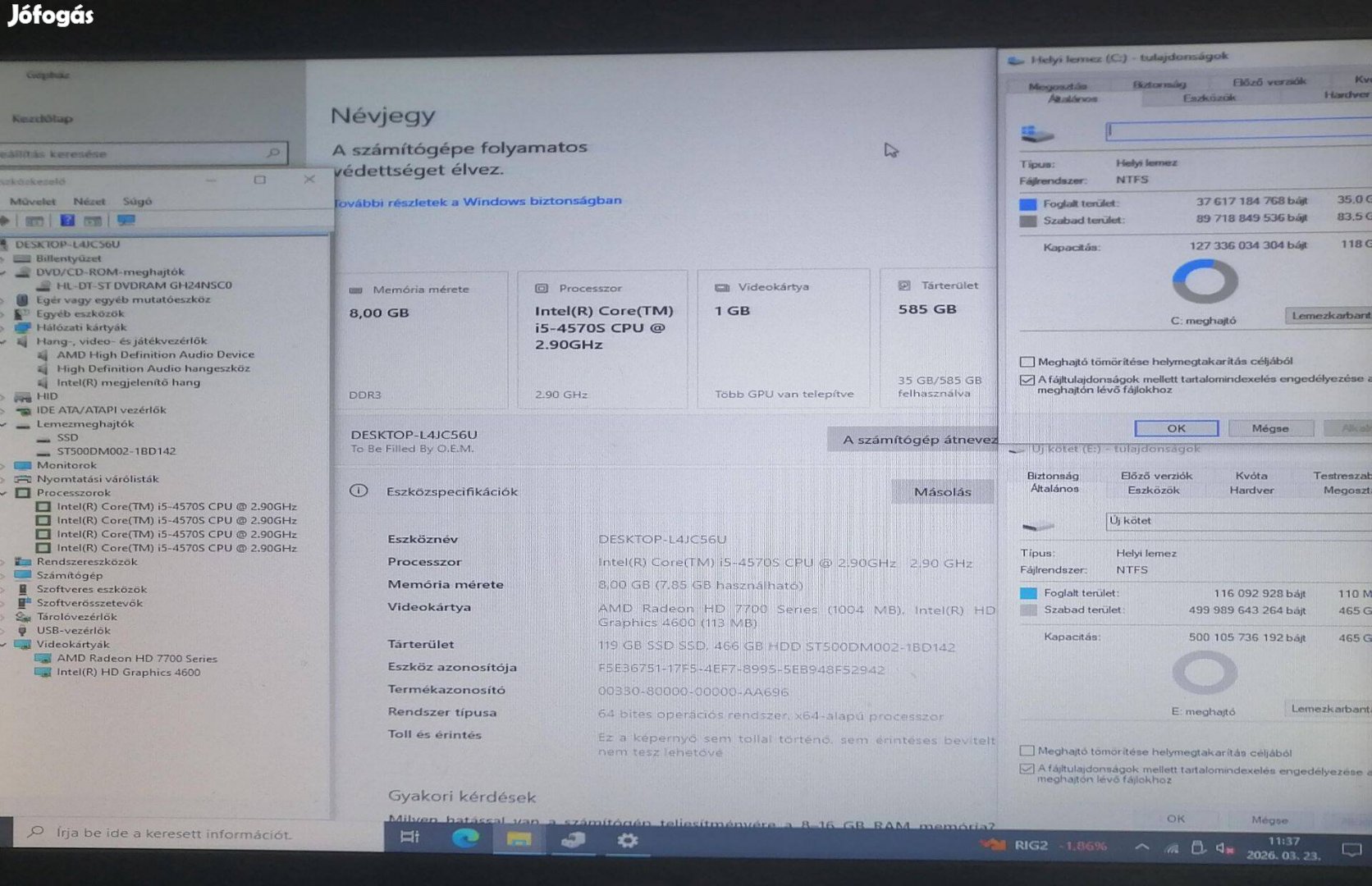 Komplett i5 számítógép monitorral, HDMI, SSD, HDD, Dvdrw, WIN10 eladó!