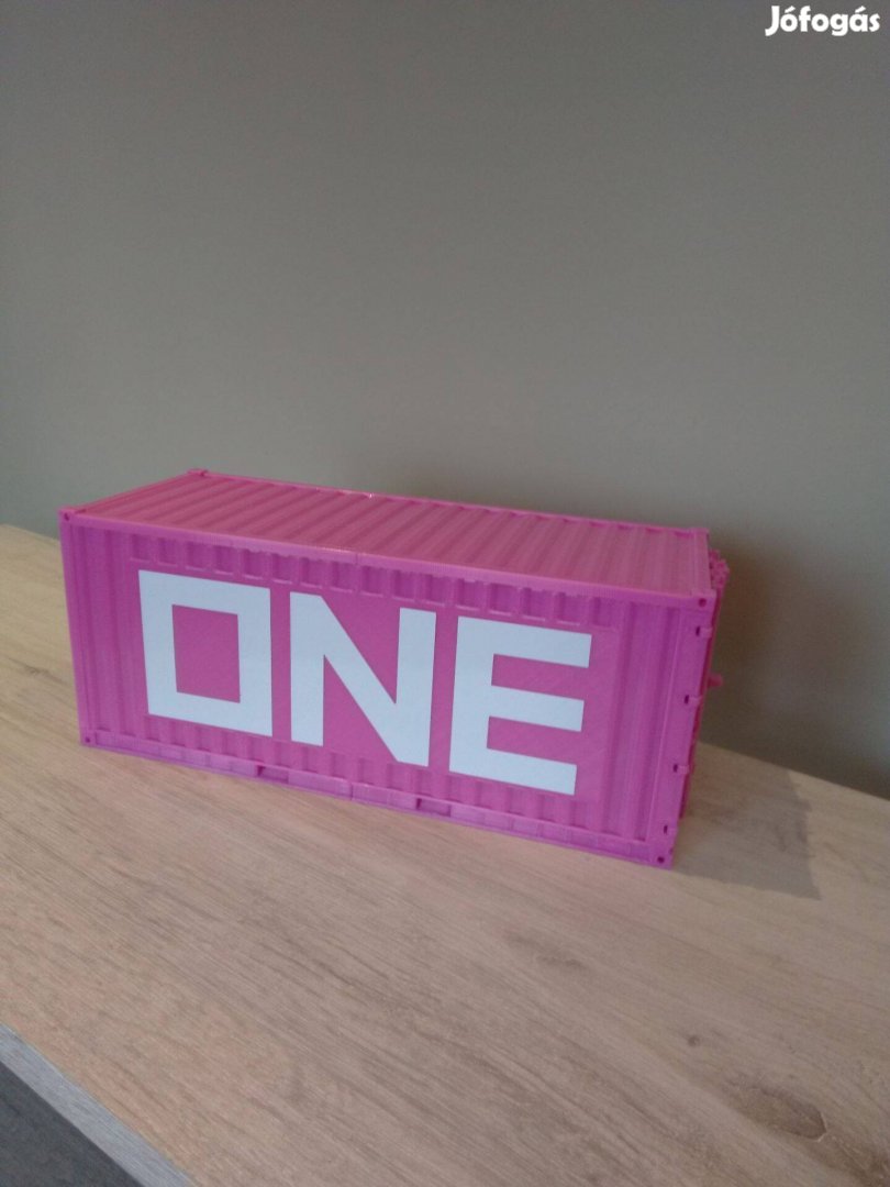 ONE feliratú konténer G kerti vasúthoz , méretek 23.5 cm hosszú ,9.5 cm széles és 10 cm magas , nyitható ajtókkal .A felírat matricázott , a konténer 3 D nyomtatással készült , nem festett .Posta vagy foxpostal megoldható .