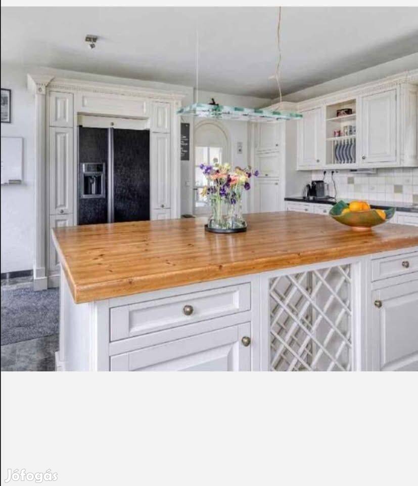 Komplett Angol konyha tömör fa , gépekkel , mosogatógép, páraelszívó, Boretti tűzhely, Amerikai luxus hűtőszekrény bőr fronttal , gránit munkalapppal . Méret további infó telefonon! Új ára 12 mil volt ! Nem Ikeás minőség, luxus konyha !!!!!