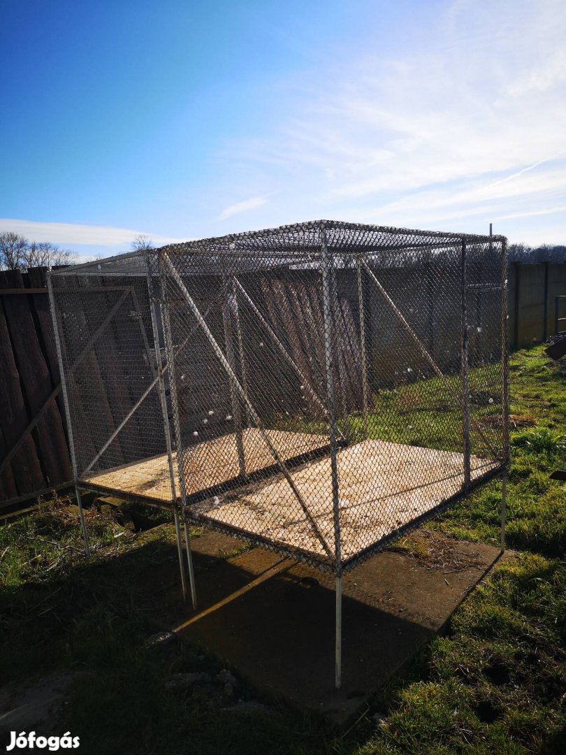 Zártszelvény keret, erős drótozat, 5x5 térháló padozat, rajta OSB lappal fedve.