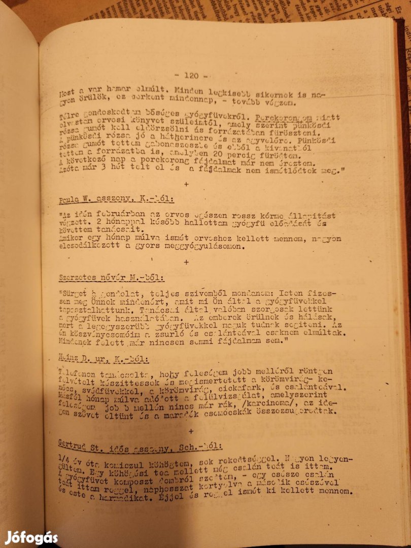 Maria Treben gyógynövényes könyv, gépelt változat 80-as évekből, hibátlan állapotban eladó.