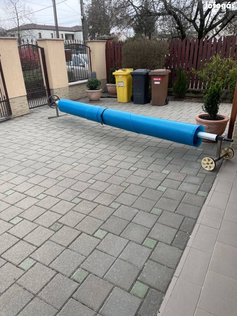 Alig használt, jó állapotú, nyári medence takaró 3,5mx8m, szabható, tekercselővel.