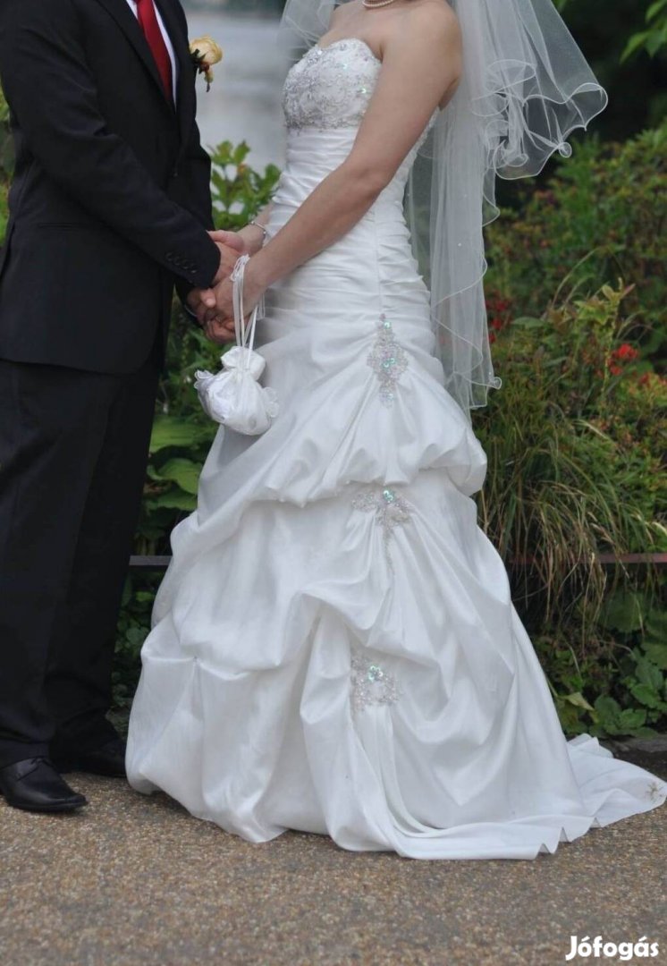 Hibátlan, tisztított, fehér menyasszonyi ruha eladó Szegeden.