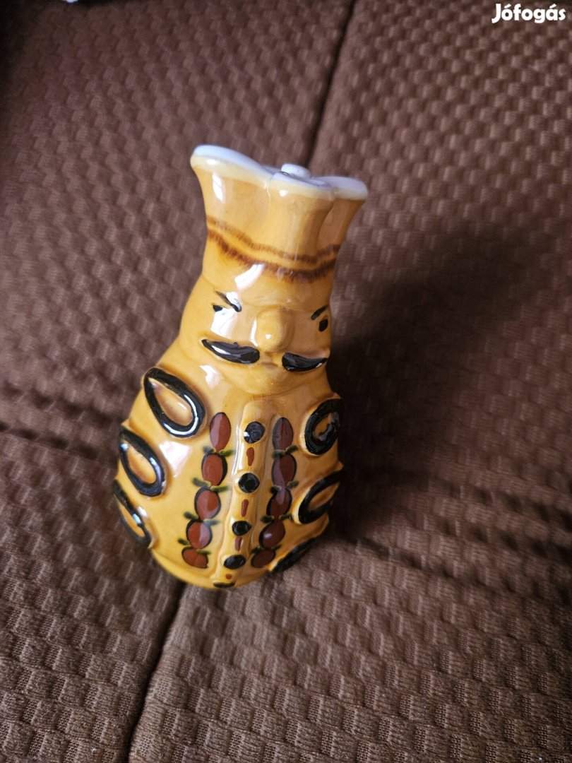 Kis méretű miska kancsó. Mázas, színes. Hiba fotózva.
