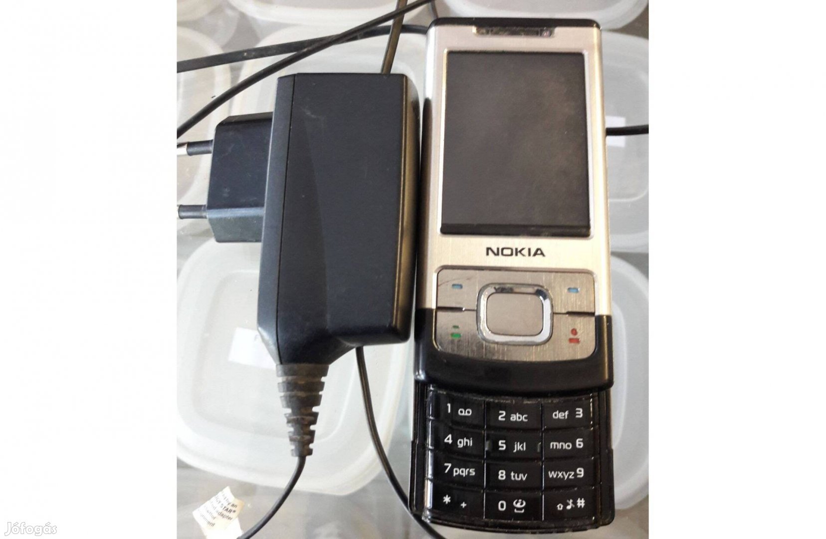 használt mobiltelefon töltővel, a kijelző rácsusztatható a billentyúzetre, Nokia