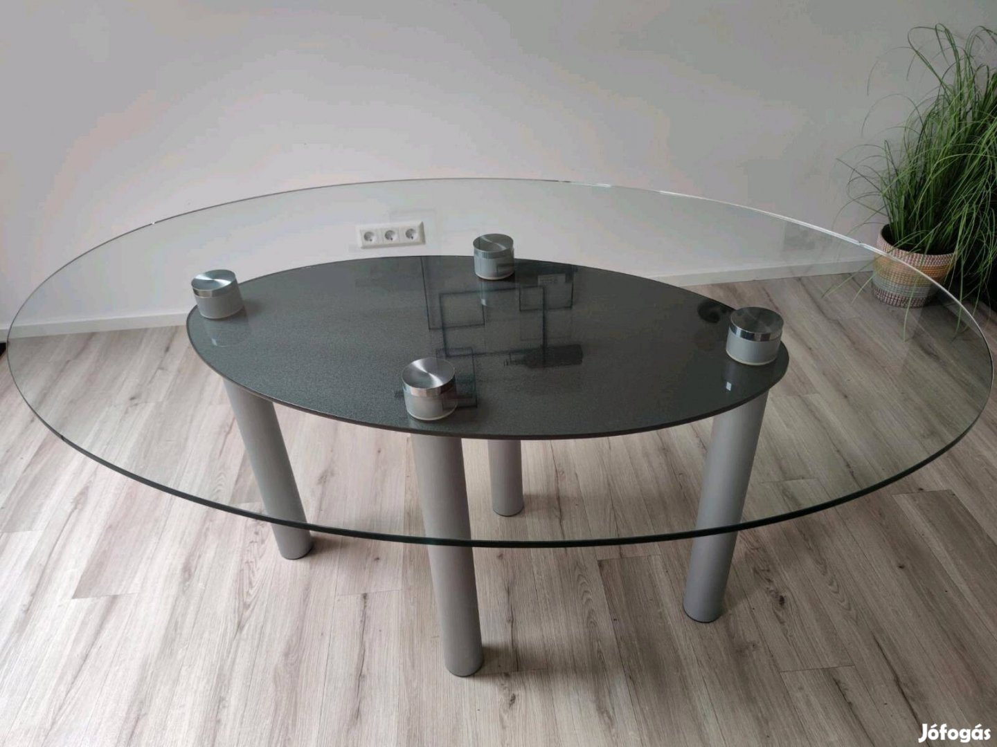 Eladásra kínálok egy különleges megjelenésű, nagyméretű üveg étkezőasztalt, amely modern enteriőrök elegáns központi darabja lehet.
