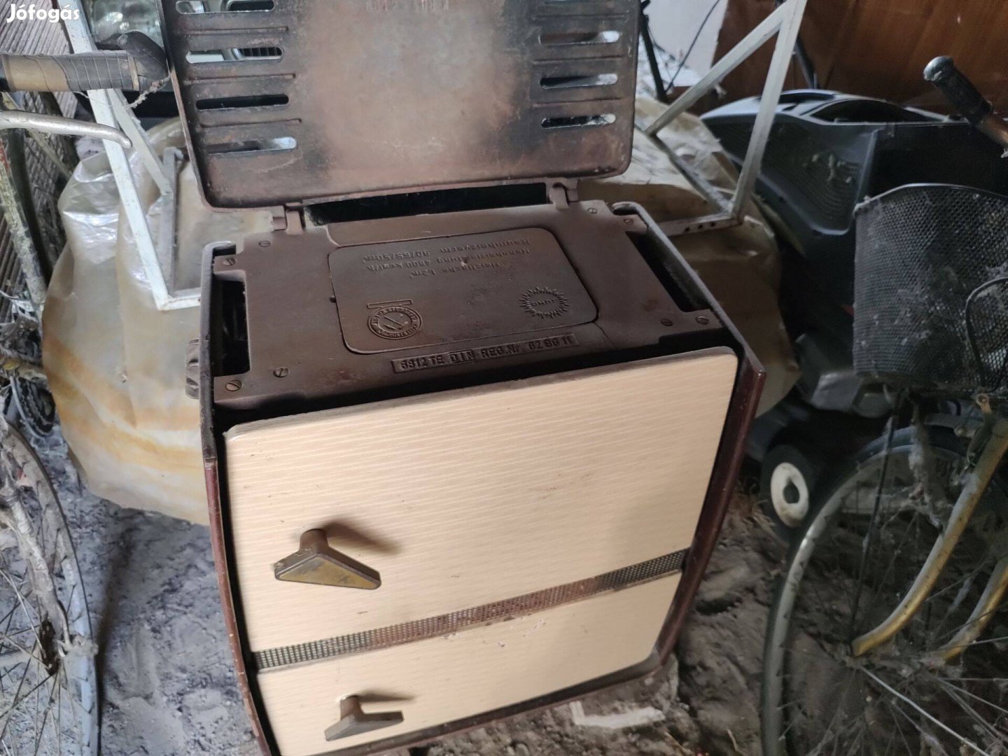 Német öntöttvas kályha eladó. Tetején repedés található, de működését nem befolyásolja.