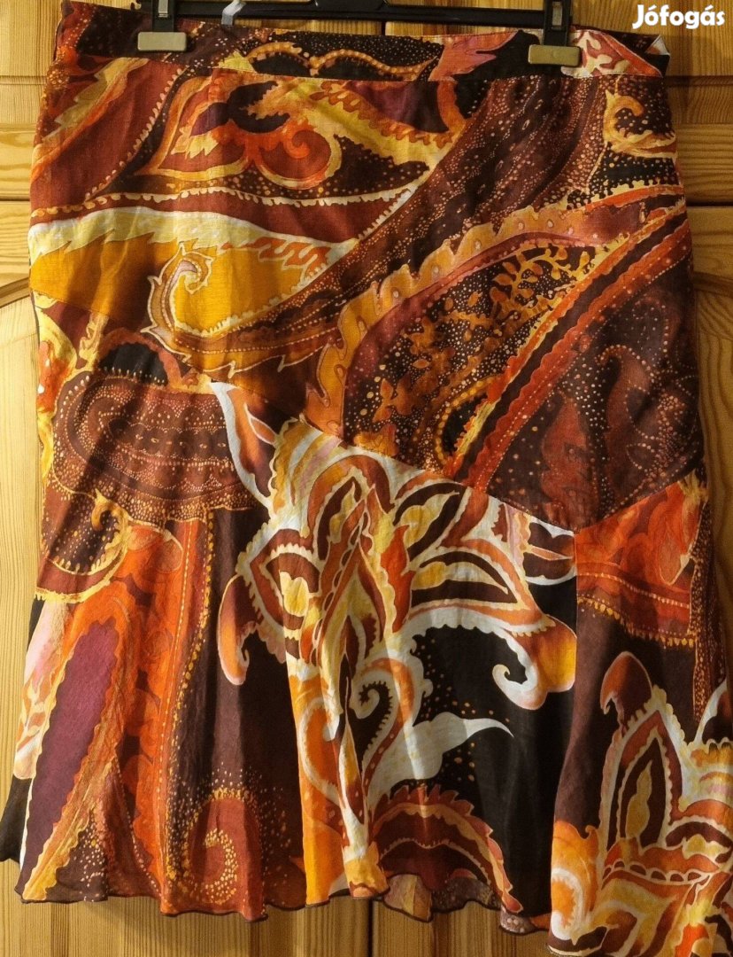 Eladó Újszegeden a képen látható mintás elasztikus szaténból női térd alatti, béleléses szoknya, derékbőség: 104 cm +gumi, hossza: 69 cm. Ára: 700 Ft.