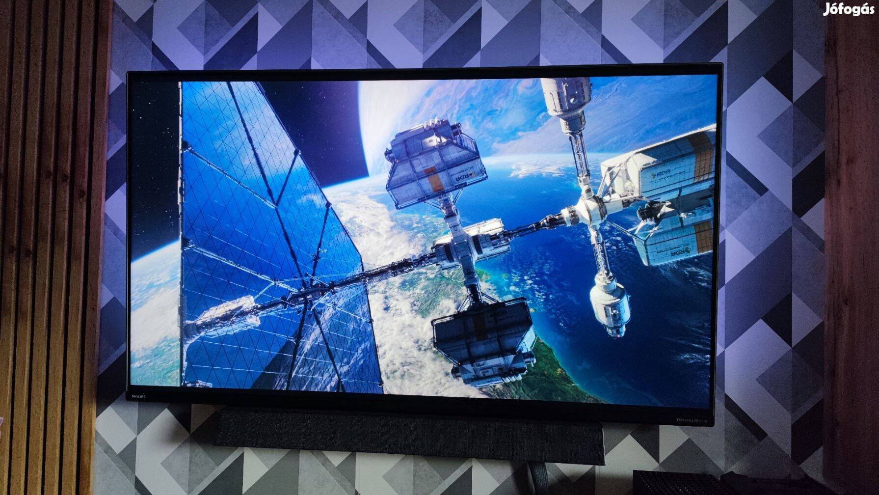 - egyéb: AMD Freesync, HDR10, alacsony késleltetésű mód, Ambilight (3 oldal), távirányító, falra is szerelhető