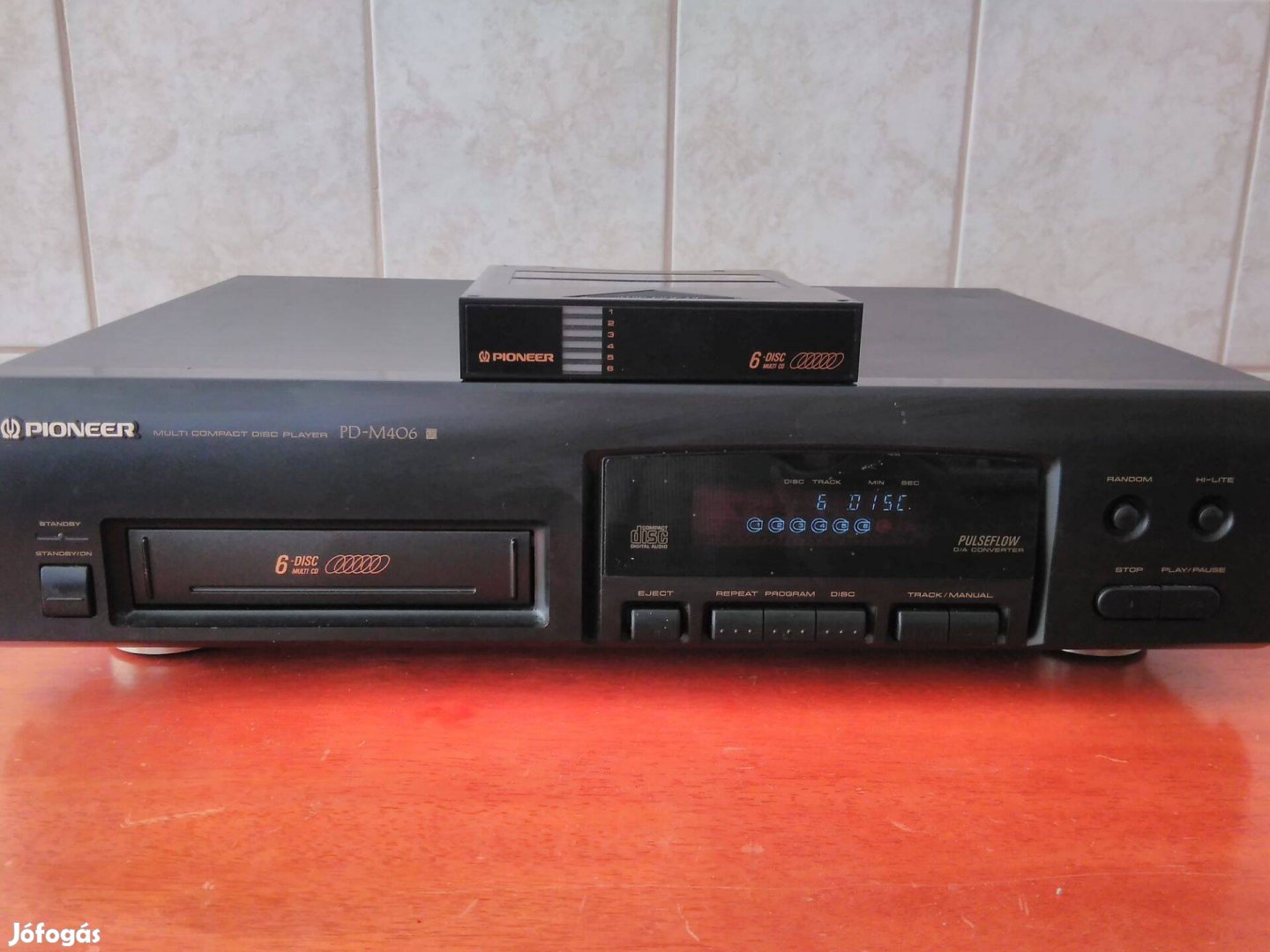 Eladó Pioneer PD-M406 CD táras lejátszó. A tárba 6 db CD lemez tölthető. Az írottakat is játssza. A készüléknak külön távja nincs. Állapota a képek szerint. A teteje karcos és horpadt is. Amit nem akartam "visszanyomni" nehogy rontsak az állapoton. Ezeket a hibákat figyelembe vettem az árban.