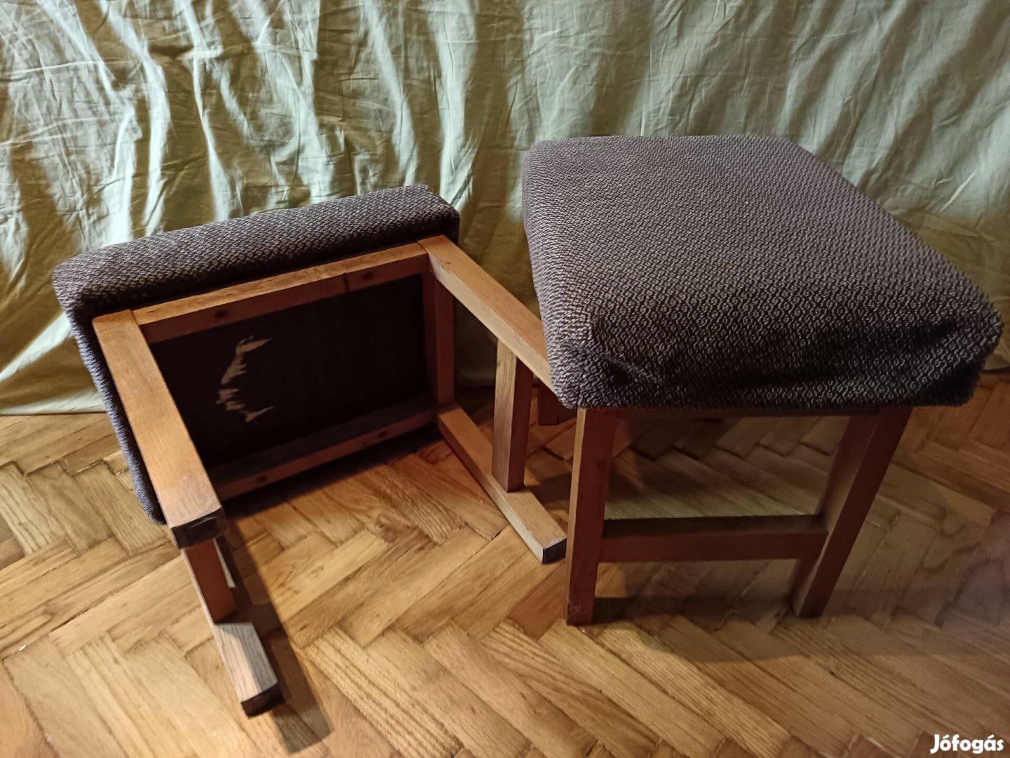 Puffok fa lábakkal eladó. 45cm széles, 35 cm mély, és 43 cm magasak. Az ár a két darabra együtt vonatkozik.