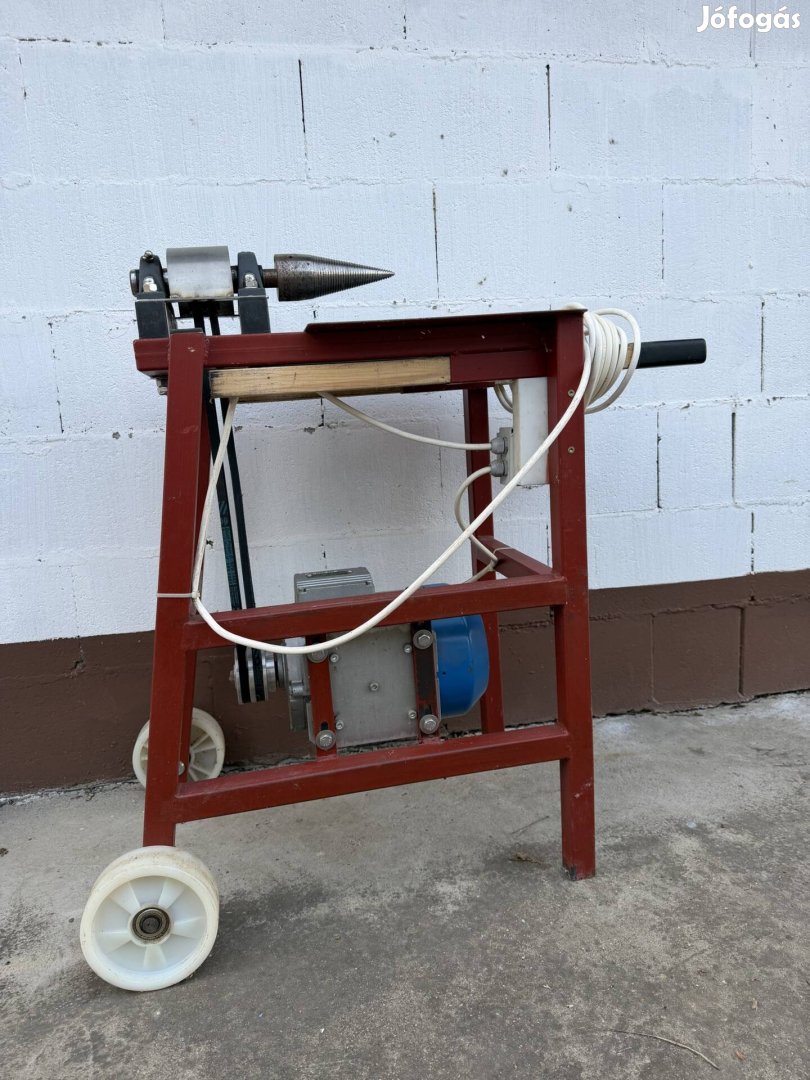 Kúpos rönkhasító, három fázisú motorral, oda vissza kapcsolóval eladó. Keréken könnyen mozgatható, amúgy stabil, precíz gép.