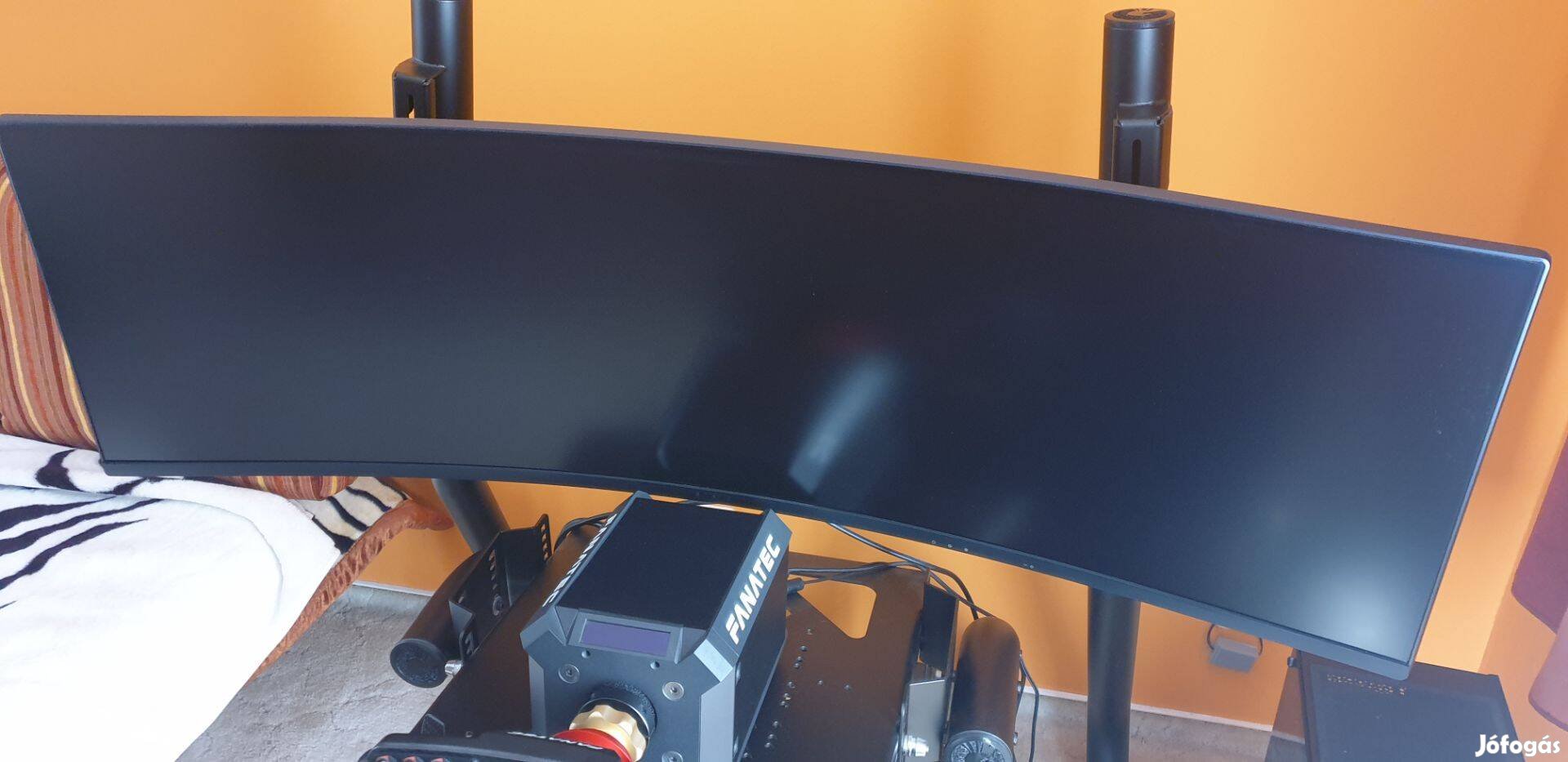 Eladó a 32:9-es, 49" méretű Qled Samsung ívelt gamer monitor, 144Hz-es képfrissítéssel, 3840 x 1080-as felbontású, válaszidő: 1 ms.