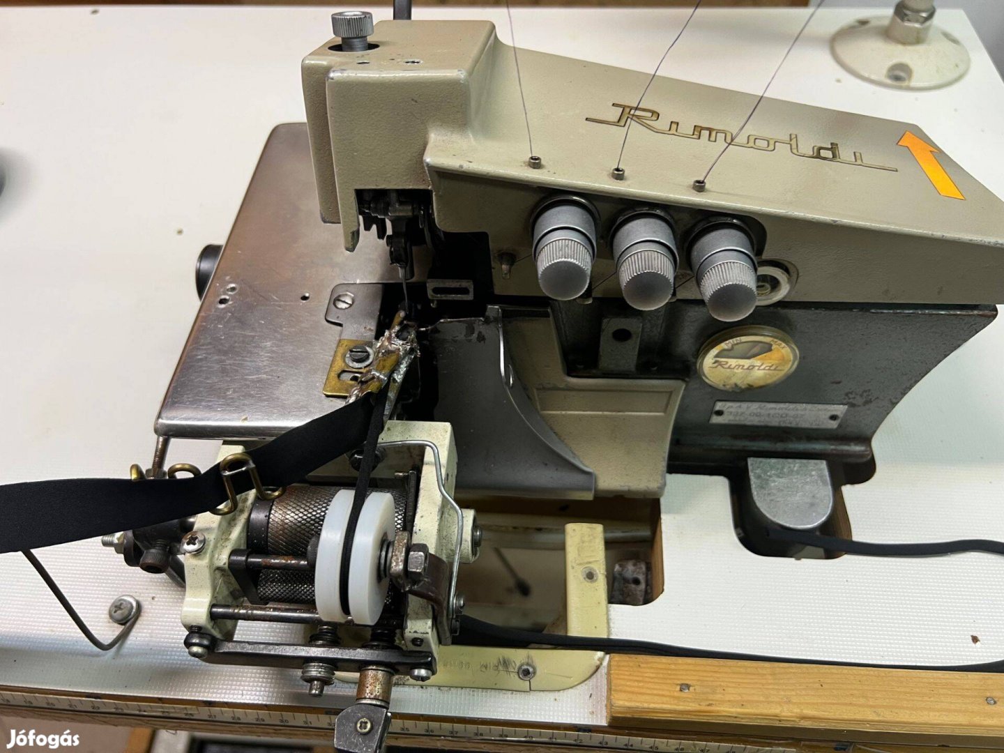 3 szálas Rimoldi interlock gép, átalakítva spagettipánt varrónak.