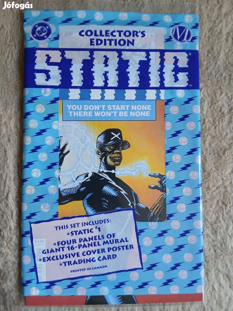 "Polybagged Edition. Written by Dwayne Mcduffie, Robert L. Washington III. Art by John Paul Leon, Steve Mitchell. Cover by Denys Cowan, Jimmy Palmiotti.Virgil Hawkins is a typical 15-year-old high school student in Dakota Citywho just happens to have powers that allow him to manipulate electrostatic forces. As Static, Dakotas newest costumed hero, Virgil fights crime with his own style and flair. But will a sharp costume and an even sharper wit be enough to take down the threat of a superpowered punk named Hotstreak? This special commemorative facsimile re-creates the original polybagged collectors edition release of Static #1 and includes a poster, four-panels of a giant Milestone mural, and an exclusive trading card! 32 pages, full color."