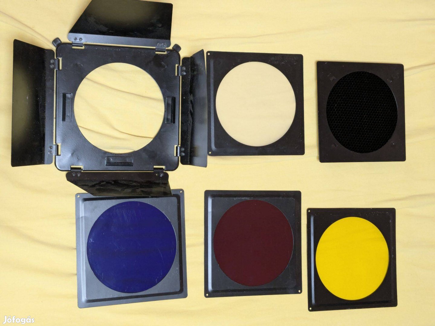 Stúdió fényterelő, színes előtétekkel, 2db. fejgen.vaku illesztővel.