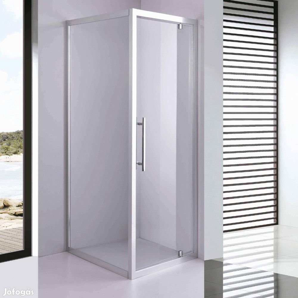 Saját márkás króm színű nyílóajtós szögletes aszimmetrikus zuhanykabin, helytakarékos zsanérral, magasított rozsdamentes acél fogganytúval, 70x100 cm-es méretben. A zuhanykabin 6 mm vastag víztiszta edzett vízlepergető biztonsági üveggel van ellátva, valamint rozsdamentes acél és alumínium elemekkel rendelkezik. Az ajtó mágneses zárral rendelkezik. A zuhanykabin vízzáró szilikon csíkokkal van ellátva.