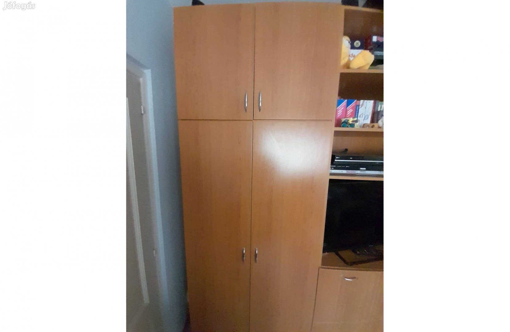 Egyedi gyártású, elemenként variálható és szerelhető szekrénysor, ágyneműtartós, polcos és fiókos elemekkel, kifogástalan állapotban eladó. Mérete: magassága 240 cm, mélysége 60 cm, szélessége 2x45 cm + 2x90 cm + 1x45 cm nyitott polcos rész (képeken nem szerepel).