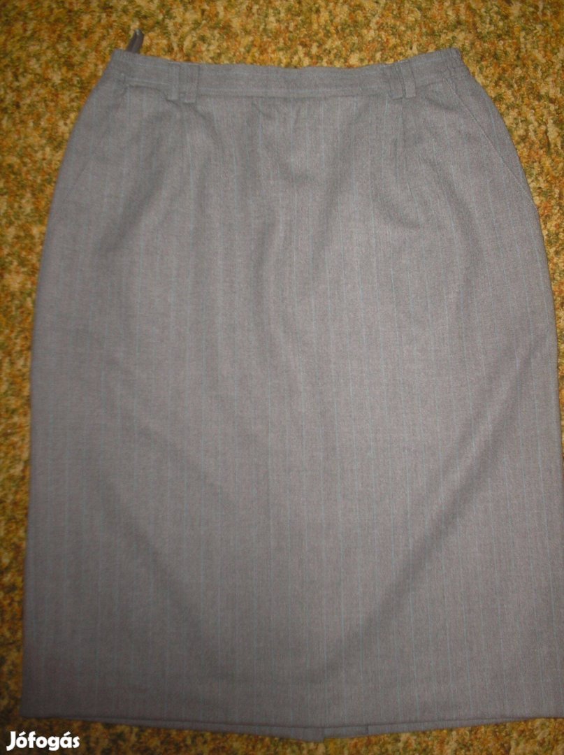 Nagyon szép állapotú alig használt elegáns szoknya. Selyembéléses, hátul felsliccelve 20 cm magasan. A derékpánt két oldalán gumírozott, ennek köszönhetően a derékbőség 38 -42 cm x2. Hossza: 67 cm.